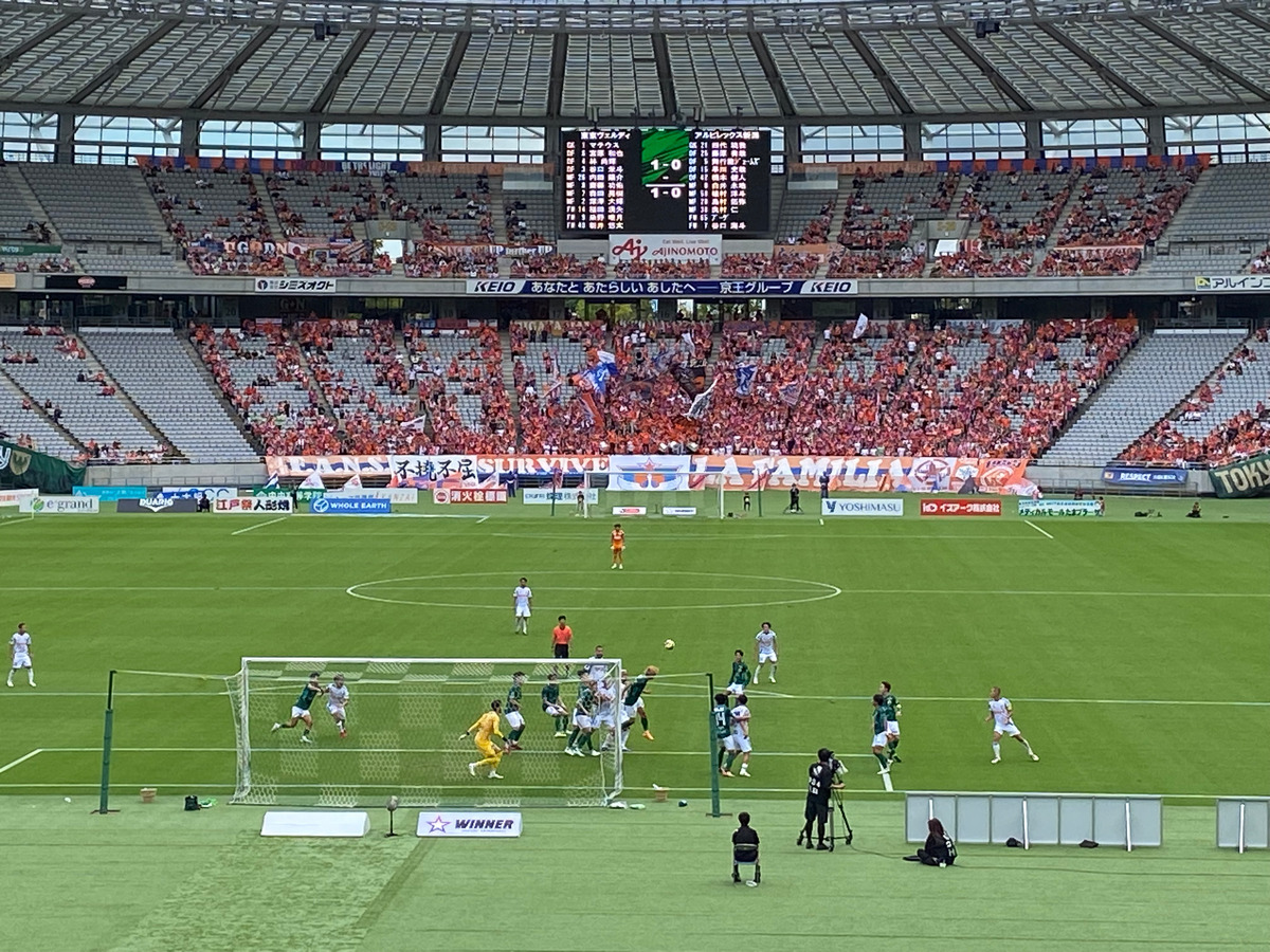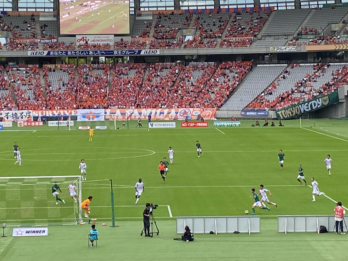 まずは、気になる他会場の試合経過を確認します。残留を争う横浜F・マリノスは、浦和レッズを4-0で圧倒しています。また。横浜FCは、名古屋グランパスに1-0でリードです。あまり喜ばしい状況ではありませんが、ヴェルディが勝ちさえすればよいだけです。