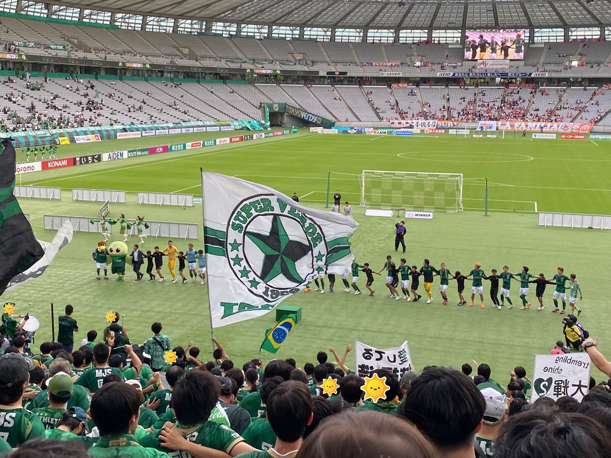 しかし、静寂は一瞬で、「Say We TOKYO! ~~~」と『COBRA』で勝利を飾った選手たちを鼓舞します。その後、『ヴェルデブランコ』でゴール裏に選手・スタッフを迎えます。