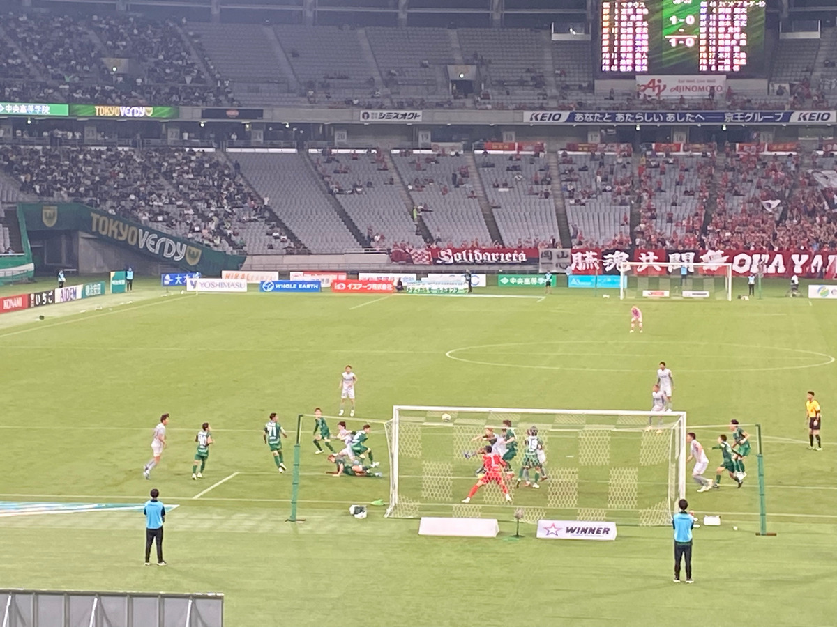 ポゼッションはほぼ五分です。ヴェルディゴール前まで攻め込まれる展開にはならず、失点する気配はありません。
