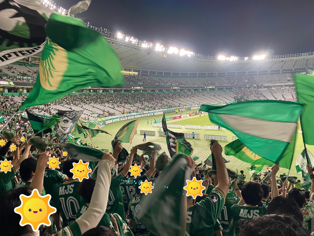 久々のゴールに、ヴェルディサポーターの歓喜が爆発です。タオルマフラーを振りながら、『アエアオ』からの「そめの オーレー そめの オーレー そめの オーレー オーレー」の大合唱です。