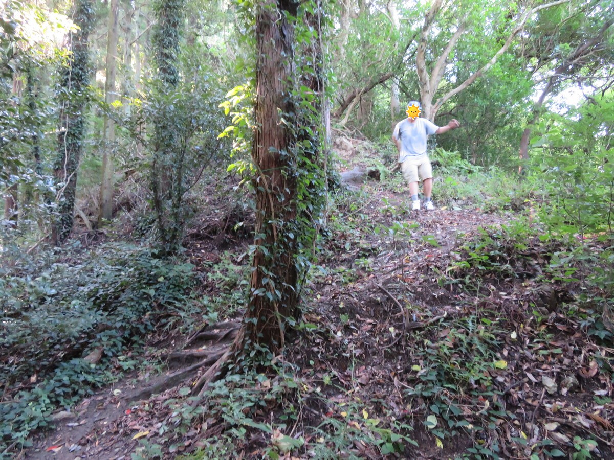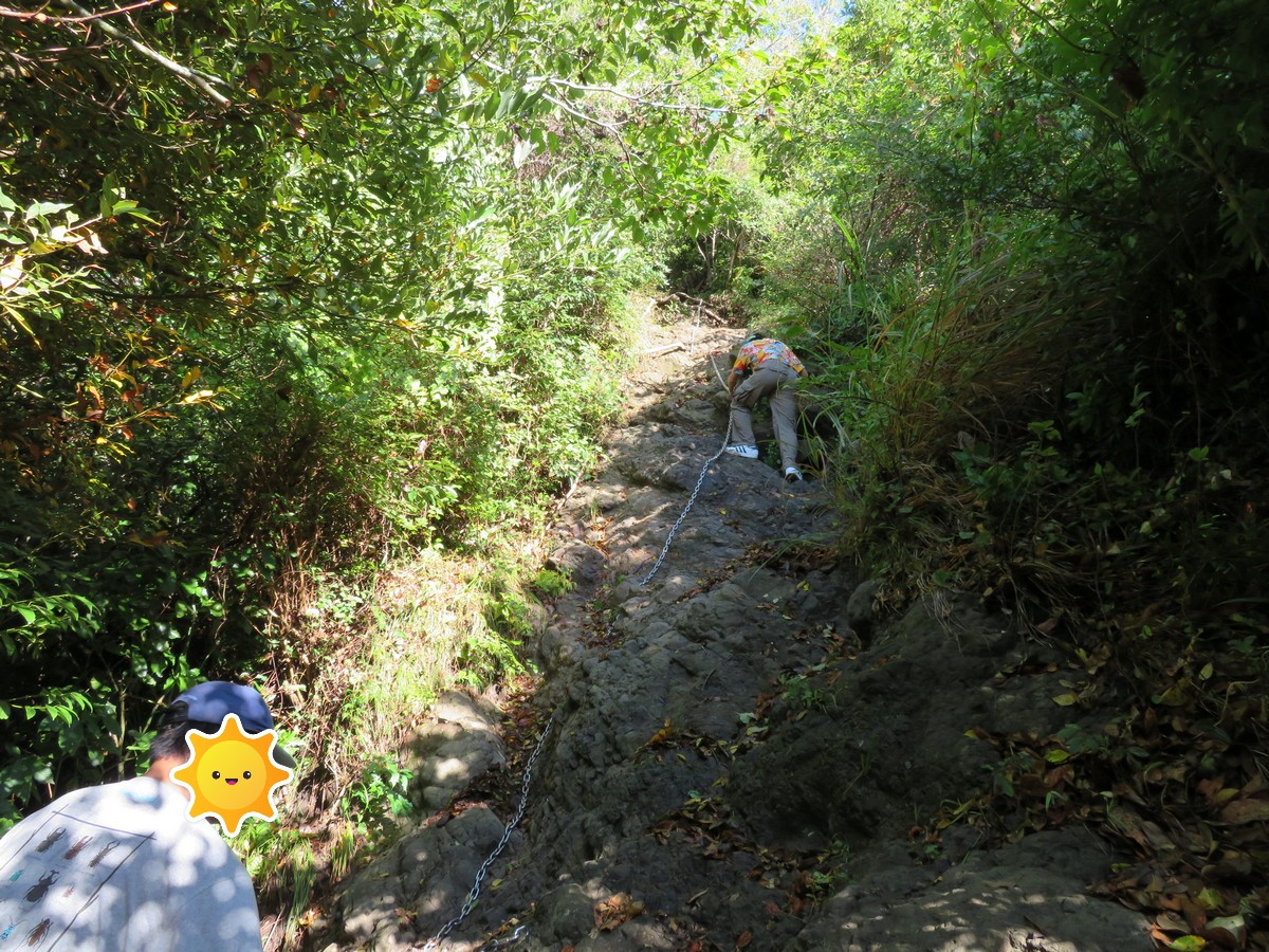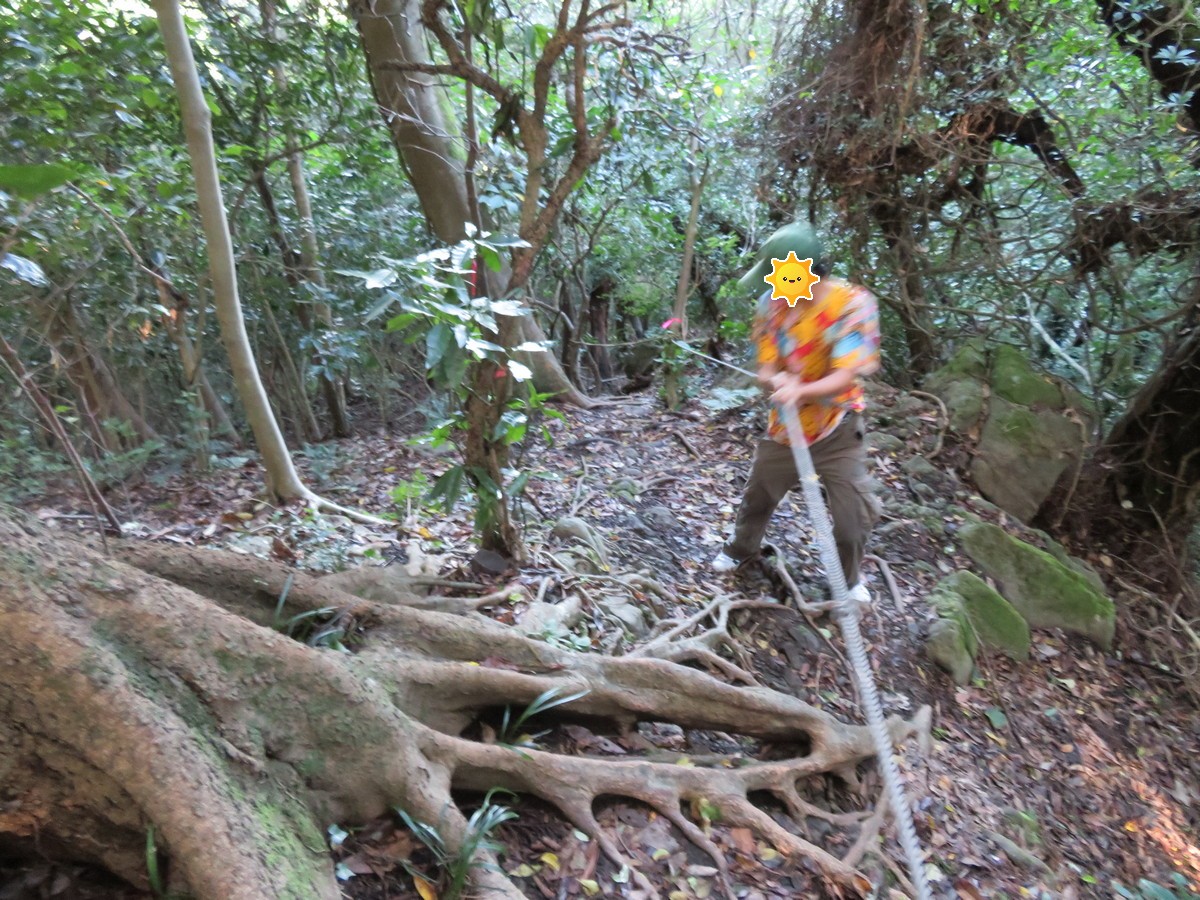 しかし、勾配は次第に劇下りに変貌していきます。しかも、前日の台風により、滑り易くなっているようです。