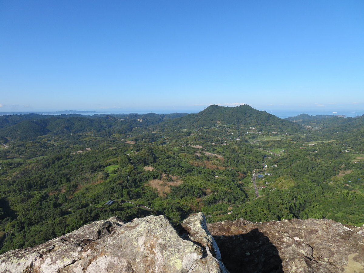 ここからは、眼下の田園風景や、伊予ヶ岳と同じように低山で有名な富山(とみさん)を眺めることが出来ます。