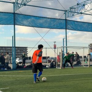 身体も温まった中、迎えた2試合目。前半から一進一退の攻防が続きます。開始4分、ペナルティエリア外からの相手チームの強烈シュートが決まります。
